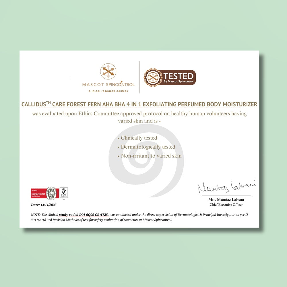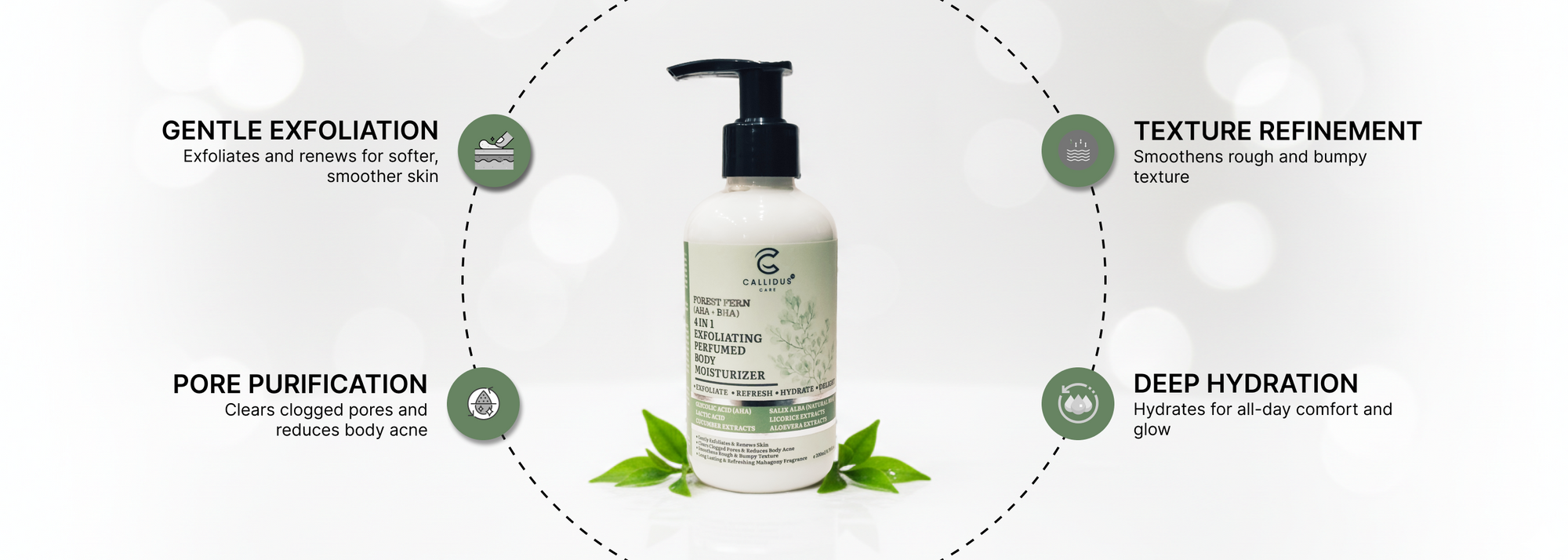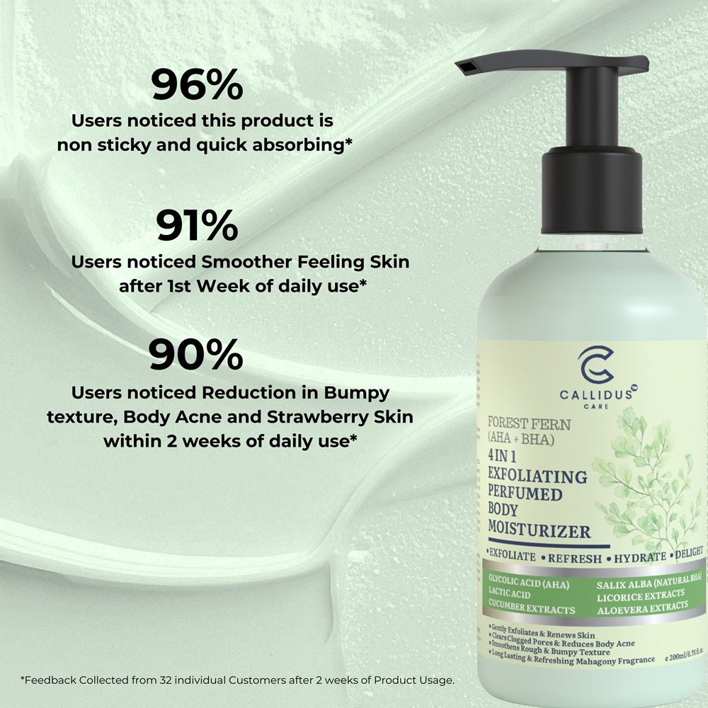 Callidus Care Forest Fern (AHA + BHA) 4 in 1 Exfoliating Perfumed Body Moisturizer